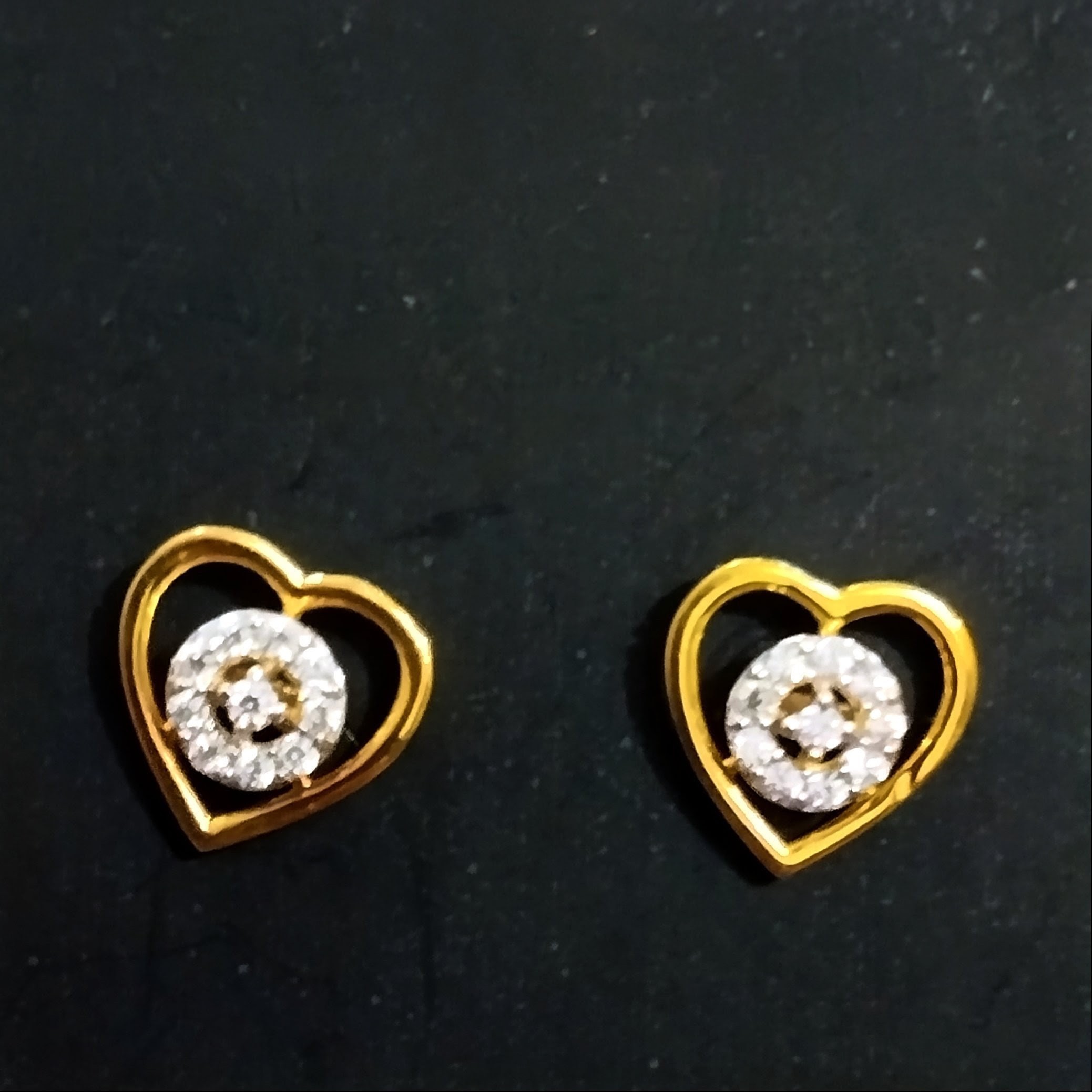 Elegant heart-shaped gold stud earrings with a dazzling stone-studded center—perfect for daily wear and special occasions. Add a touch of love and elegance to your jewellery collection with these beautifully crafted heart-shaped stud earrings. Designed with a sleek gold outline forming a delicate heart, the center features a sparkling cluster of finely set stones that enhance its shine and charm. These earrings are lightweight, comfortable, and perfect for everyday wear as well as festive occasions. The secure push-back closure ensures a snug fit, making them ideal for long hours of wear. A timeless design that complements both traditional and modern outfits, these studs also make a perfect gifting choice for loved ones.