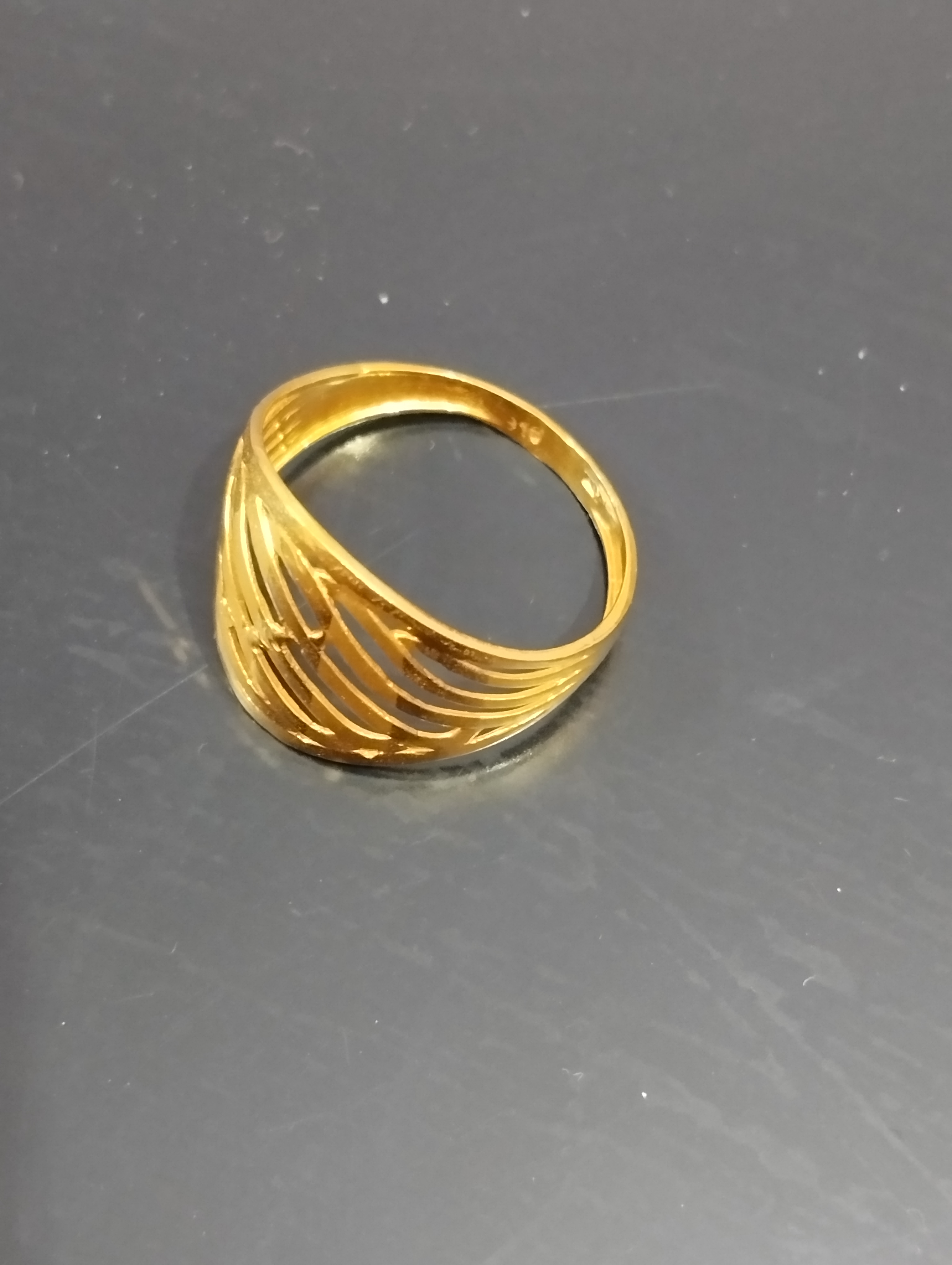 A modern gold ring featuring elegant flowing wave patterns, crafted for a bold yet graceful look. Elevate your style with this beautifully crafted Golden Wave Designer Ring. Designed with smooth, flowing lines that create a layered wave effect, this ring offers a perfect balance of sophistication and contemporary charm. The openwork design adds lightness and uniqueness, making it comfortable for daily wear while still standing out as a statement piece. Its polished gold finish enhances the shine, making it ideal for both casual outfits and festive occasions. A perfect choice for those who appreciate minimal yet artistic jewellery designs. Highlights: - Stylish wave-inspired design - Lightweight and comfortable fit - Smooth polished finish - Perfect for daily wear & special occasions - Trendy and elegant statement piece